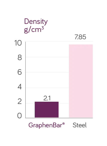 GraphenBar® has a tensile strength greater than 1000 MPa (145 ksi). Compared to steel, GraphenBar® can withstand more than three times the tensile load of steel before failure.